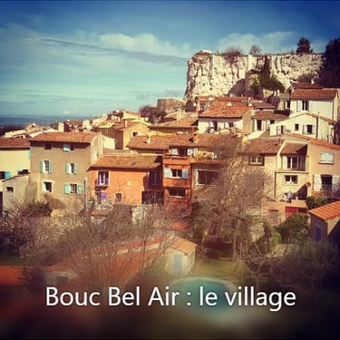Bouc-Bel-Air est un village provençal situé sur le Pays d’Aix, à environ 20 kilomètres de Marseille. Il est perché sur un rocher, offrant une vue imprenable sur les villages et la campagne environnante.